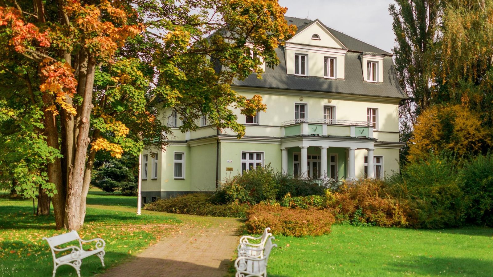 parku, v jehož středu se nachází hlavní lázeňská budova – hotel